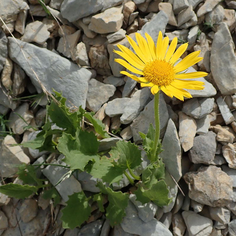 Le doronic à feuilles cordées est une plante ne poussant pas à haute altitude, elle produit des tiges plus longues, des capitules plus petits, ses feuilles ne sont pas aussi dentées.