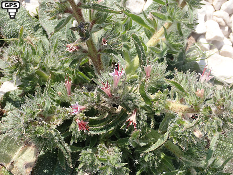 Plante vivace du pourtour méditerranéen, du Piémont pyrénéen et des côtes landaises, la vipérine des Pyrénées a un port pyramidal facilement reconnaissable car faisant penser à un sapin. Ses fleurs rose pâle ont des étamines très saillantes à filet rose foncé presque rouge. L'intégralité de la plante est couvert de nombreux poils blancs et raides. On la rencontre dans les lieux arides et sablonneux des côtes à basse altitude.