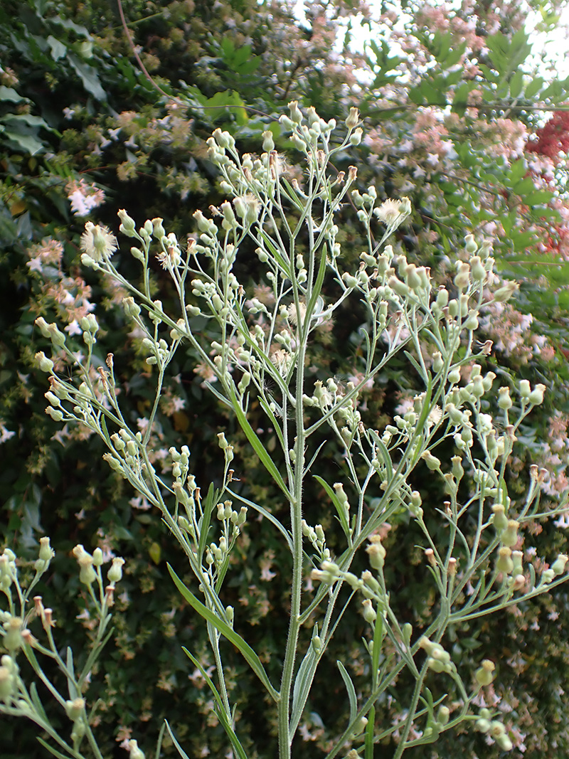 La vergerette de Sumatra est une plante herbacée annuelle ou bisannuelle originaire d'Amérique du Sud qui s'est d'abord largement naturalisée en Asie puis ensuite en Europe. C'est une plante rudérale qui concurrence la vergerette du Canada et qui est plus fréquente en ville que cette dernière. D'autre part, elle est adventice des cultures et a tendance à coloniser les champs en jachère. C'est une grande plante (jusqu'à 2 mètres de hauteur) dressée, rameuse et très feuillée. Les feuilles médianes sont fasciculées par 3 à 4 le long de la tige. L'inflorescence est un racème pyramidal de nombreux capitules (au moins 50) sur lequel on trouve à la fois des capitules séchés, des capitules en formation et des capitules ouverts, donnant à la plante un aspect désordonné et peu esthétique. Les capitules présentent des fleurs centrales tubulées jaunes, celles de la circonférence ont des ligules blanchâtres très courtes dépassant de moins d'un millimètre les fleurs tubulées.Pour des usages médicinaux, la Vergerette du Canada est actuellement préférée à la Vergerette de Sumatra car ses effets sont mieux documentés. (Wikipedia)