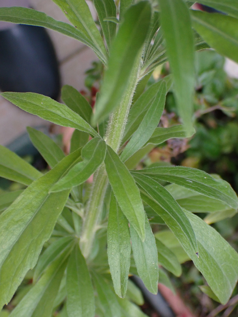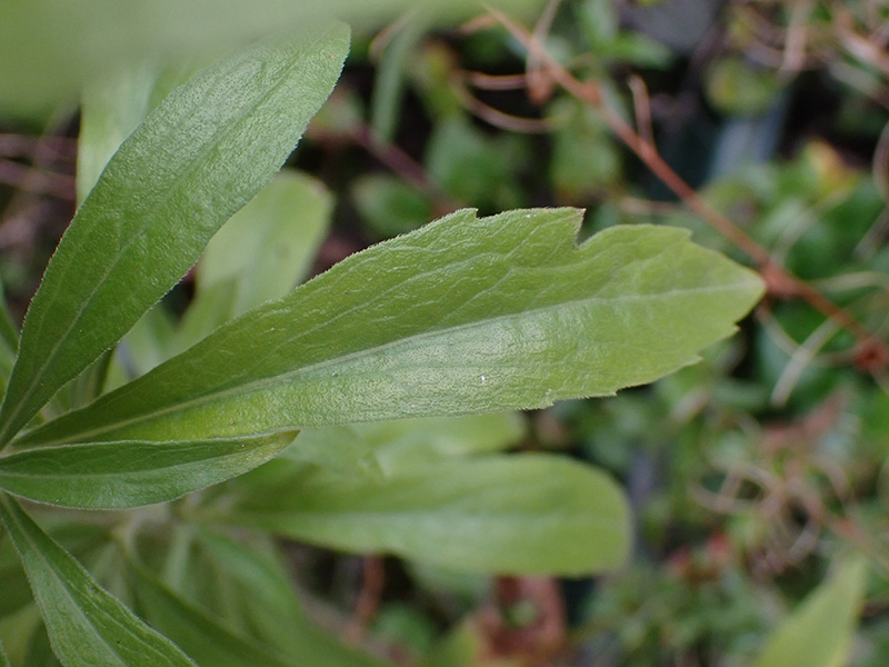 Feuilles entières ou souvent un peu dentés et en rosette à la base, feuilles caulinaires alternes à limbe elliptique, généralement ciliée sur les bords, parfois un peu dentées au sommet
