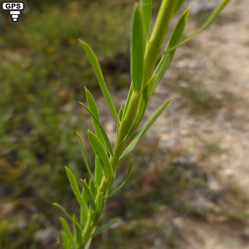 Feuilles nombreuses, linéaires apliquées le long de la tige, étroites, entières et mucronées
