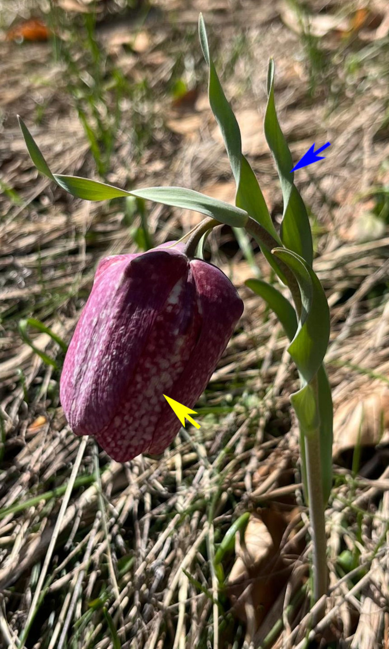 La fritillaire à involucre a des feuilles très fines et a deux ou trois feuilles juste au-dessus de la corolle formant une sorte d'involucre.