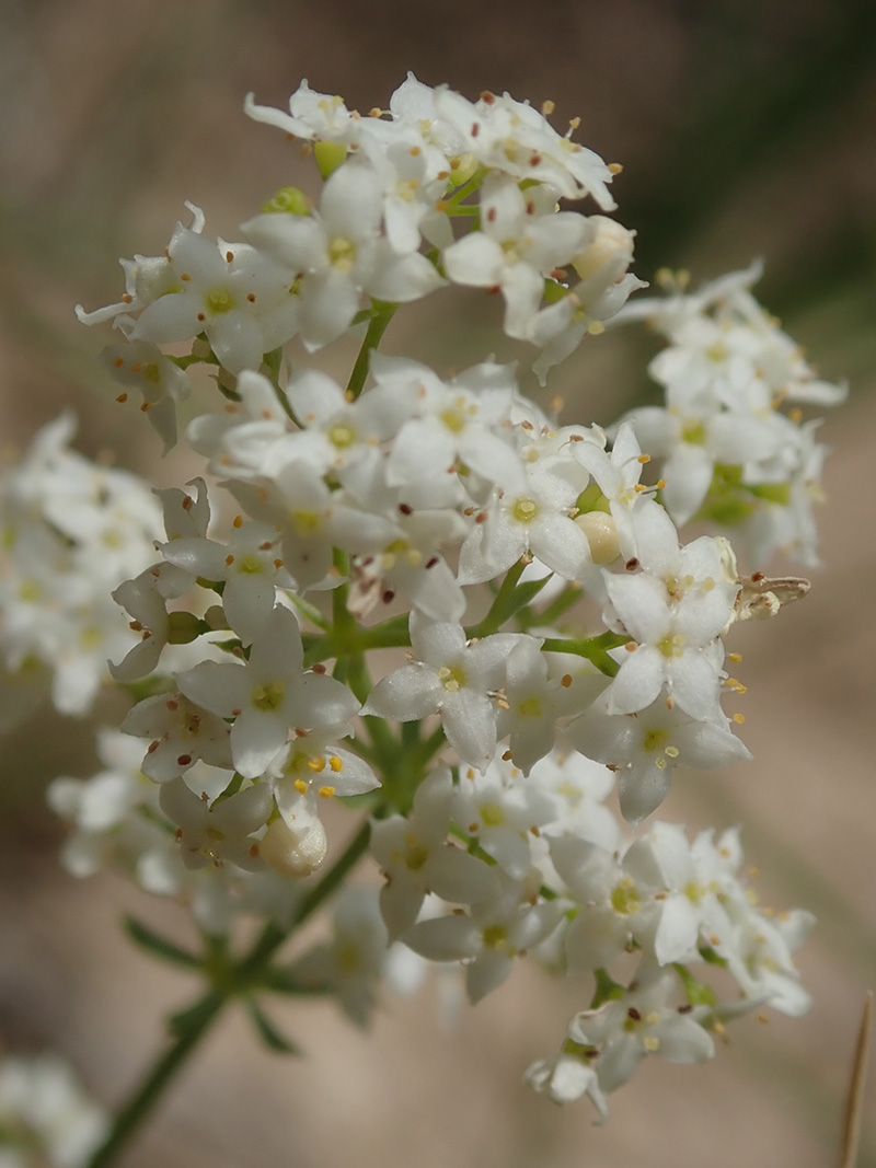 Fleurs blanches assez grandes pour un gaillet avec 4 pétales terminés par une pointe