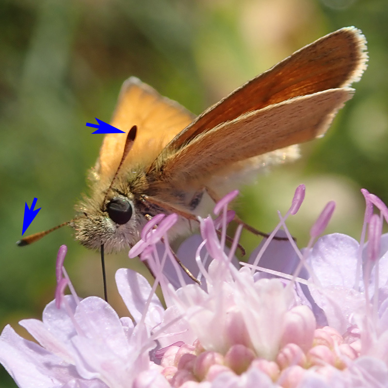 L'hespérie de la houque a le dessous de l'extrémité des massues antennaires orange. Différentiation très délicate !