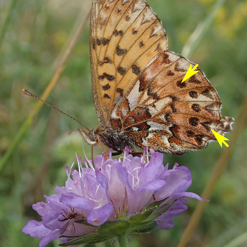 Le dessus du chiffre est marqué de dessins et de taches plus fines et il est souvent présent en montagne mais il n'a pas de taches rougeâtres au revers des postérieures.