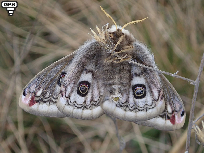Le petit paon de nuit est un beau papillon de grande taille notamment la femelle, sans être aussi grand que le grand paon de nuit. Il doit son nom à ses ocelles présents sur ses quatre ailes (dessus-dessous) rappelant l'ornementation des plumes de la queue des paons et visant à intimider et effrayer les prédateurs. Les ailes antérieures sont grises avec une ligne ondulée blanche bordée par deux fines lignes noires dans la zone postmarginale. A l'apex, on note la présence d'une tache carmin. Les ailes postérieures sont grises pour la femelle et ocre-jaune pour le mâle (sur les deux faces). La marge externe des ailes forme une bande blanchâtre. Le thorax est couvert de poils blancs et bruns. L'abdomen présente des lignes transversales alternativement blanches et grise. Ce papillon n'a pas de trompe, en effet il ne se nourrit pas à l'état d'imago ! Contrairement au grand paon de nuit, l'accouplement se fait de jour, le mâle étant actif le jour à la recherche de femelle. Celle-ci, qui ne s'active que la nuit, pond environ deux cents oeufs répartis autour d'une branche. C'est la chrysalide qui hiverne dans un cocon caractéristique en forme de poire et bien caché près du sol. Vous trouverez beaucoup de renseignements concernant la biologie de ce papillon sur le remarquable site chenille.net.