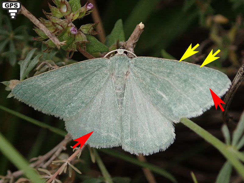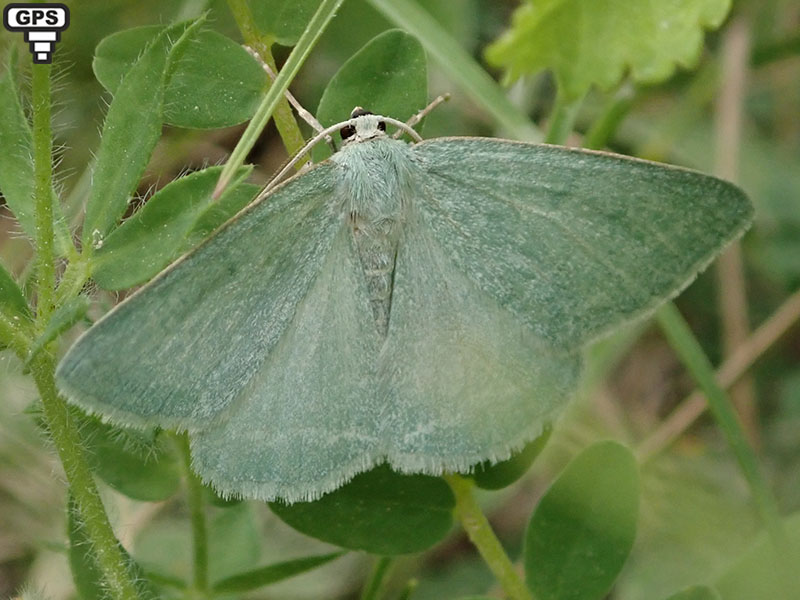 L'hémithée du genêt est un papillon actif la journée que l'on rencontre dans des lieux où croissent ses plantes hôtes (surtout les genêts), dans les friches, les lisières de forêts claires et les prairies. C'est un papillon assez original par sa couleur verte assez intense du moins pour la première génération. Le dessus des ailes antérieures est vert uniforme uniquement traversé par une fine ligne postmarginale blanchâtre et deux fines lignes vert plus foncé dans l'aire médiane et post-médiane. Ces lignes ne sont visibles que sur les sujets jeunes. La chenille hiverne, elle est mature à la fin avril ou en mai.