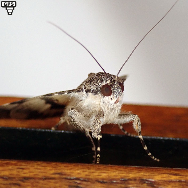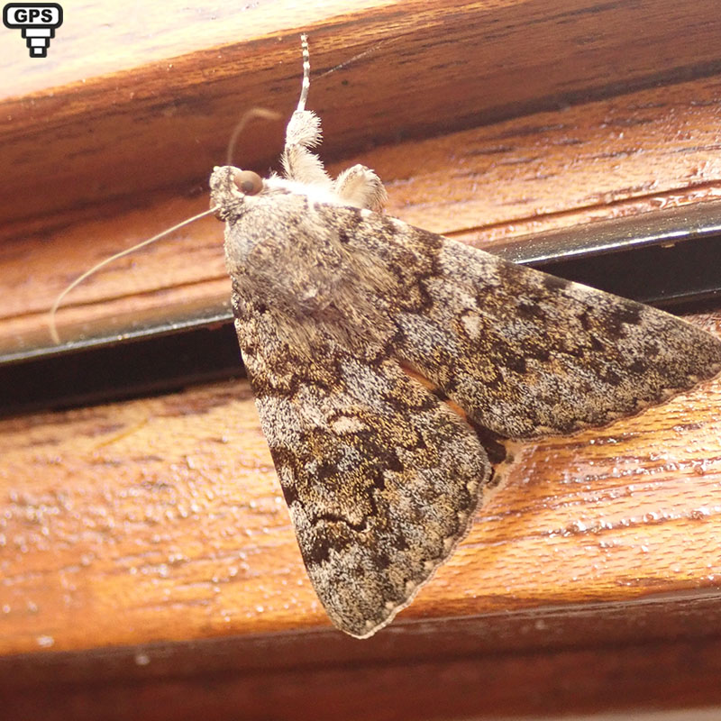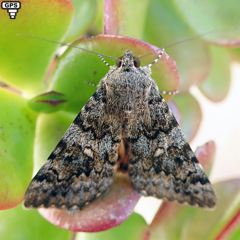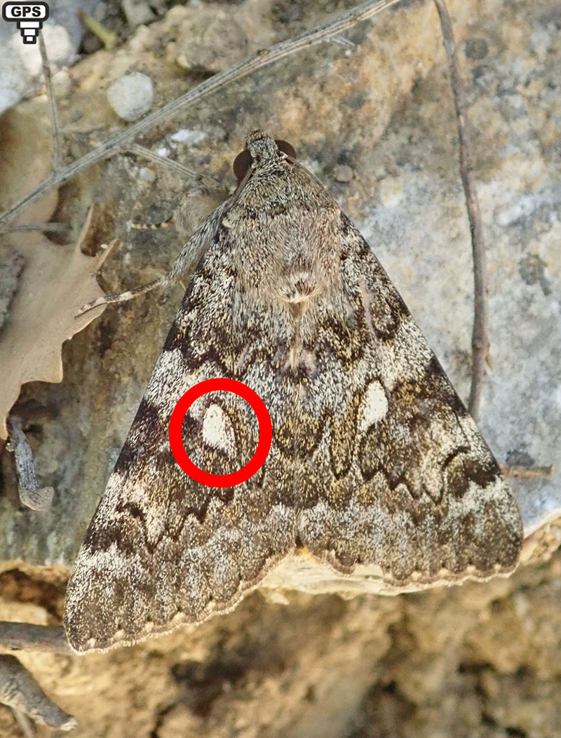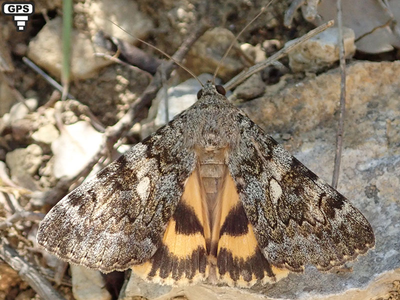 Ce papillon méditerranéen, assez difficile à décrire, a le dessus des ailes antérieures ornées de lignes noires zizagant entre des taches grises et brunes, seule une tache claire et arrondie dans la cellule permet de l'identifier sans trop de difficulté. Les ailes postérieures sont jaune orangé traversées par deux lignes épaisses et noires dont une submarginale. Quand le papillon s'envole, il surprend par la couleur vive de ses ailes postérieures. Papillon de nuit, il peut être actif le jour. Ce sont les oeufs qui hivernent les chenilles dévorant les feuilles des chênes au printemps.