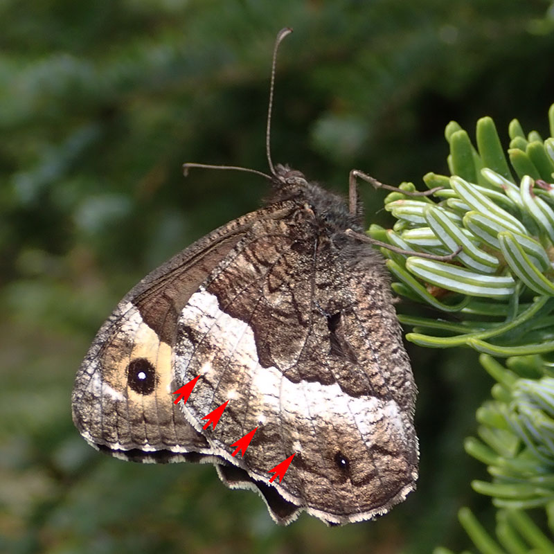 Dimorphisme sexuel Sur le dessus des ailes,la bande claire du mâle est voilée, elle est beaucoup plus contrastée et souvent plus large chez la femelle.