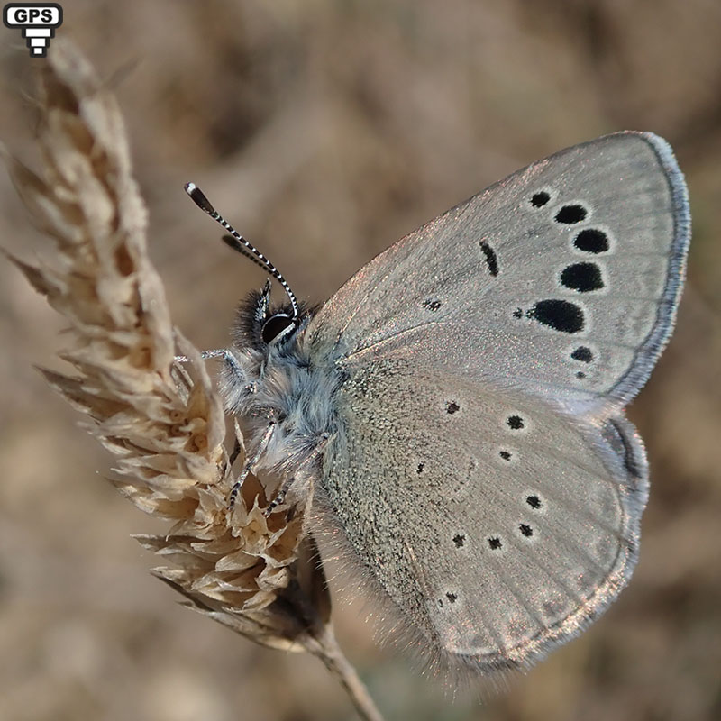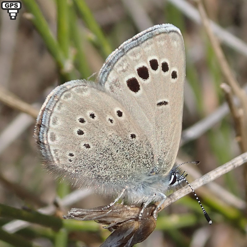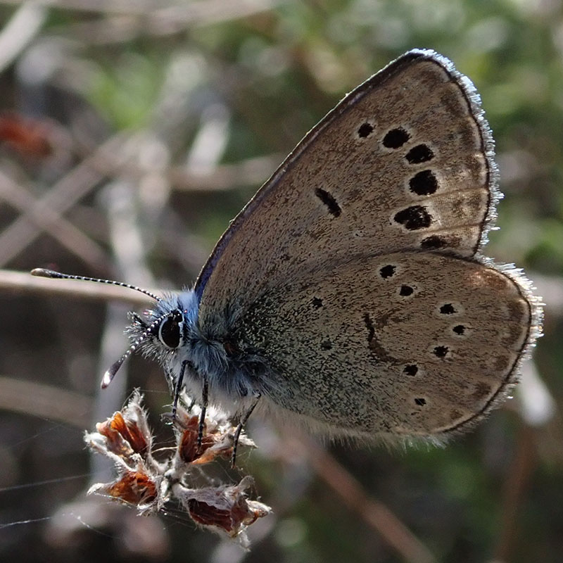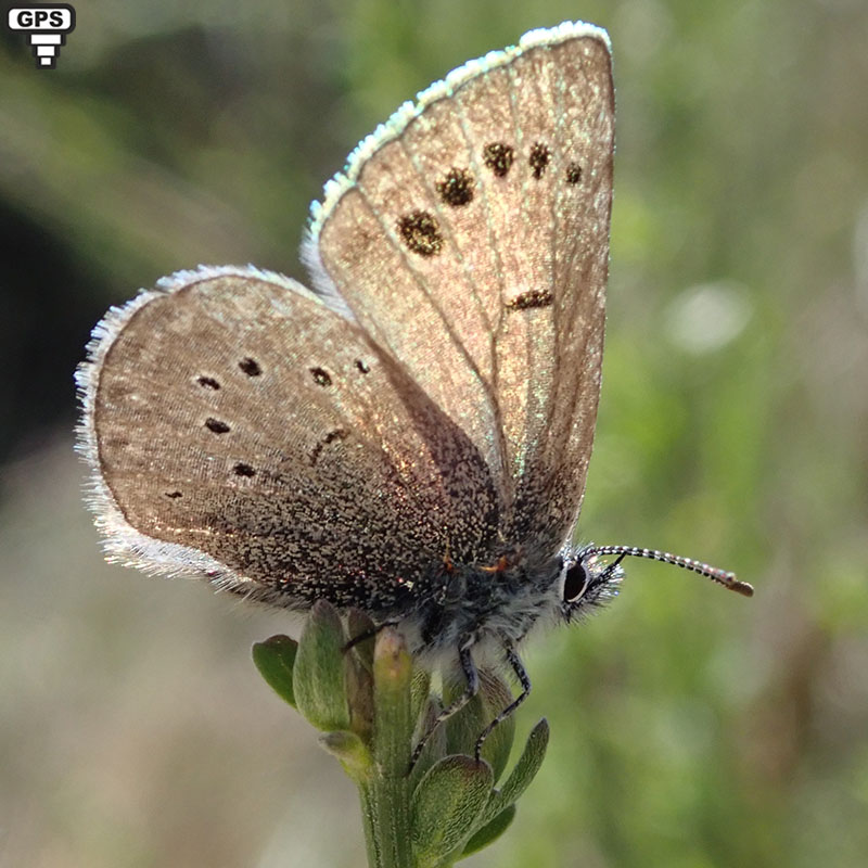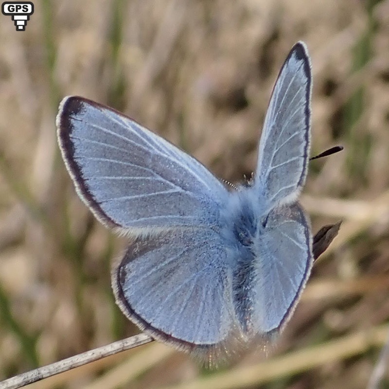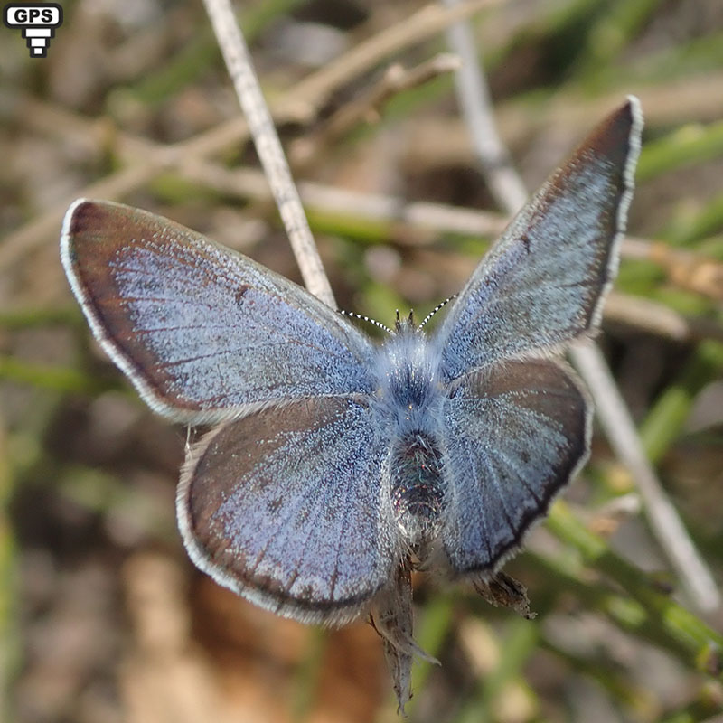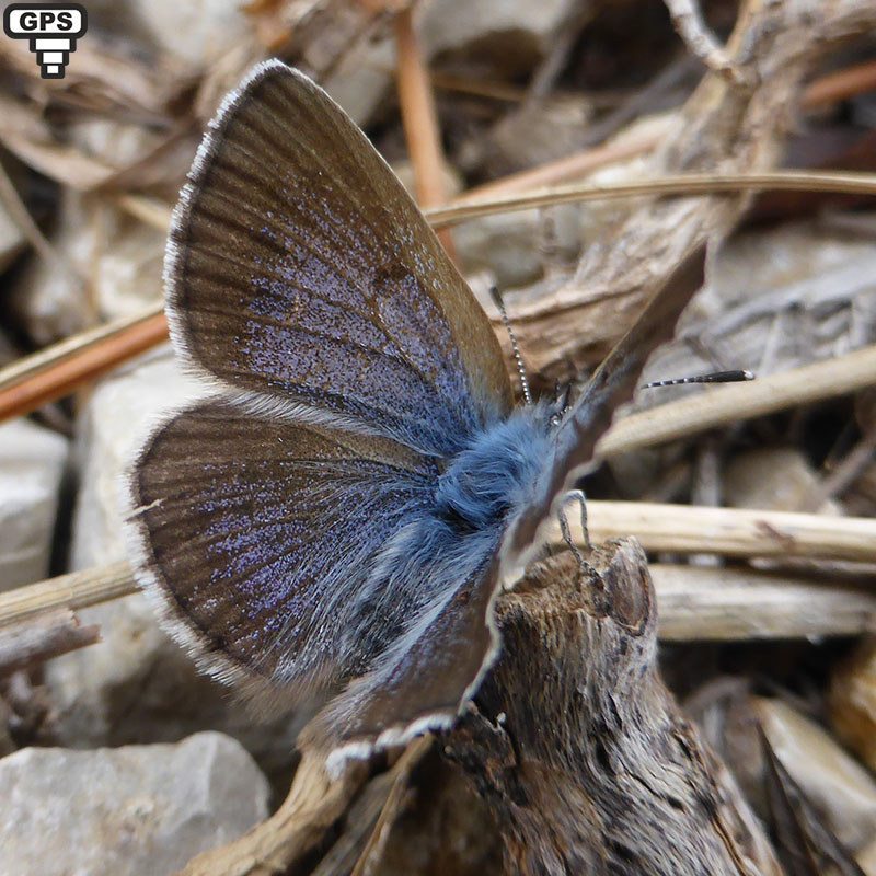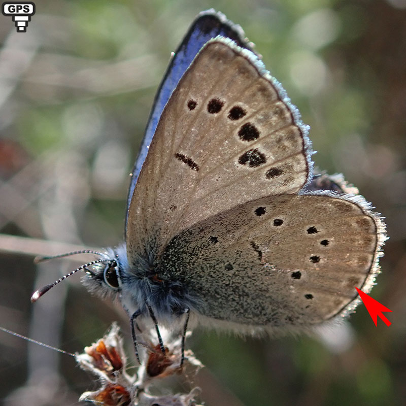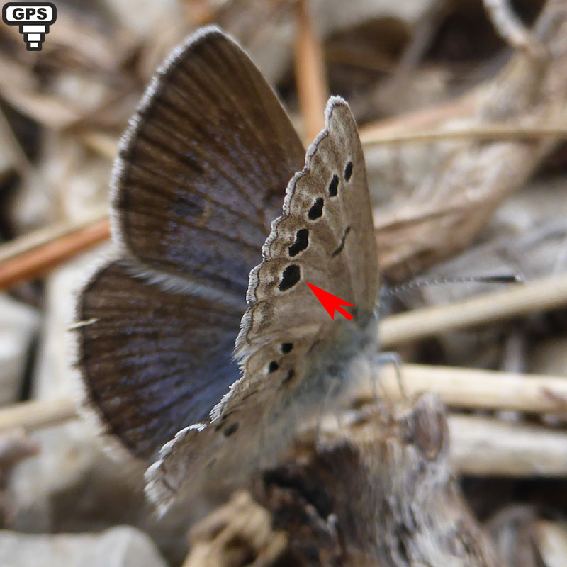 Dimorphisme sexuel Le recto des ailes est bleu pour le mâle et marron pour la femelle avec une suffusion bleue assez large.