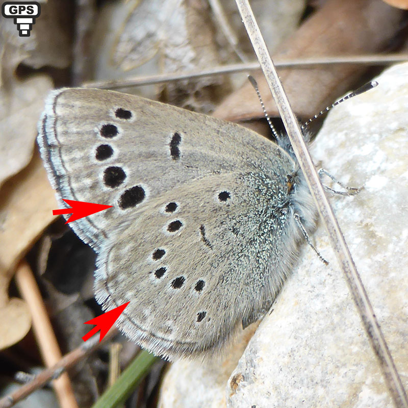 Ce petit papillon n'est visible qu'au printemps notamment sur les fleurs de thym qu'il affectionne particulièrement. C'est un des premiers papillon à apparaître en avril avec l'argus vert dans les garrigues bien exposées au soleil. C'est le revers des ailes qui permet de l'identifier facilement : il est marqué, aux antérieures, d'une ligne de gros ocelles noirs cerclés de blanc. La taille de ceux-ci va en croissant le long du bord externe de l'aile, le dernier et plus gros étant souvent de forme ovale. Une ligne d'ocelles plus petits décore les ailes postérieures. Le dessus des ailes est bleu vif chez le mâle et brun avec une partie basale bleue plus ou moins importante chez la femelle.