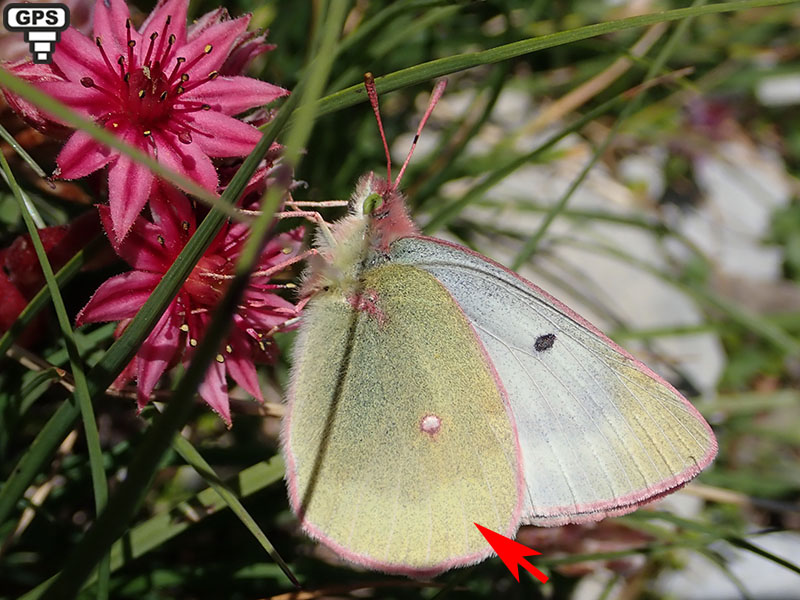 Dimorphisme sexuel Le mâle a le dessus des ailes jaune pâle, la femelle a le dessus des ailes presque blanc.