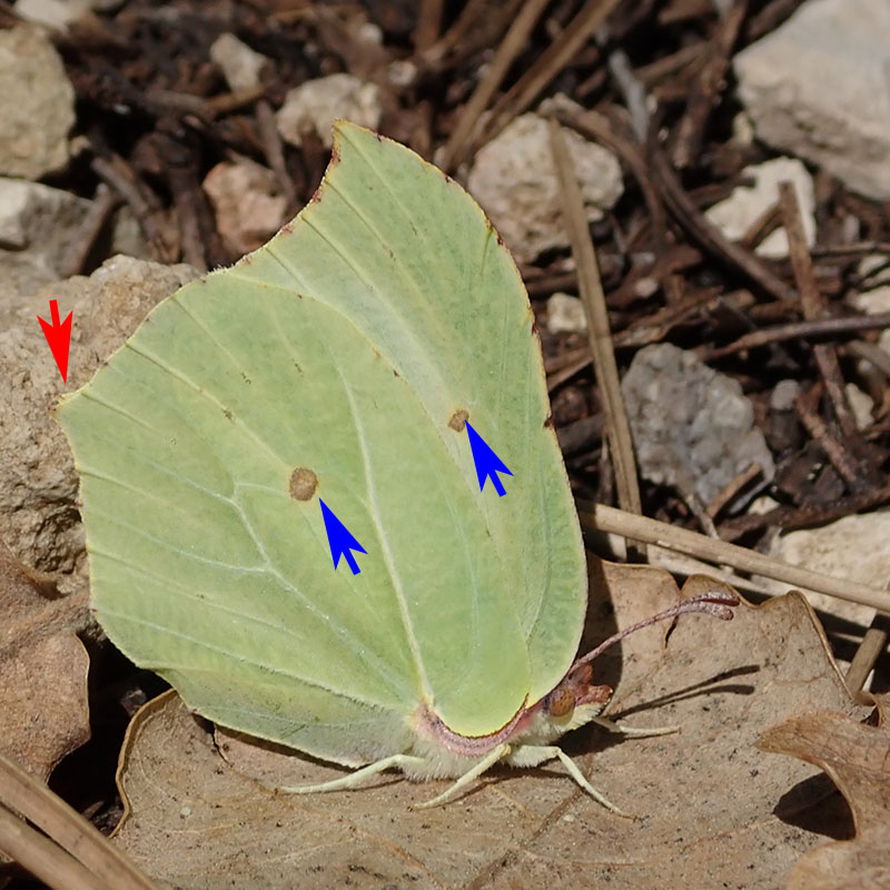 Dimorphisme sexuel La face supérieure de ses ailes est jaune citron chez le mâle et blanc ou blanc-jaunâtre pour la femelle.