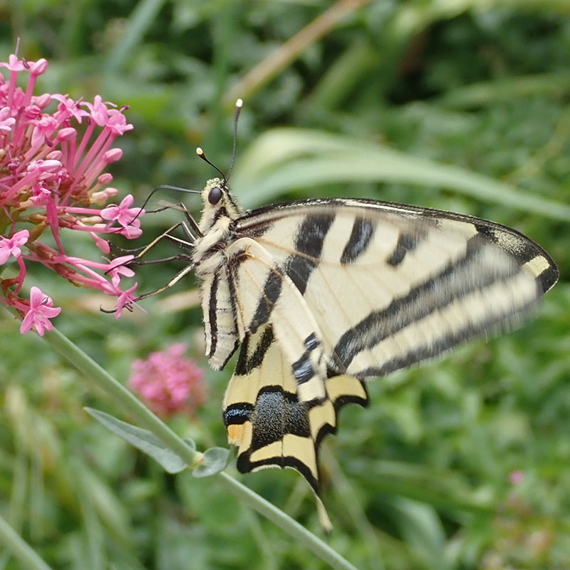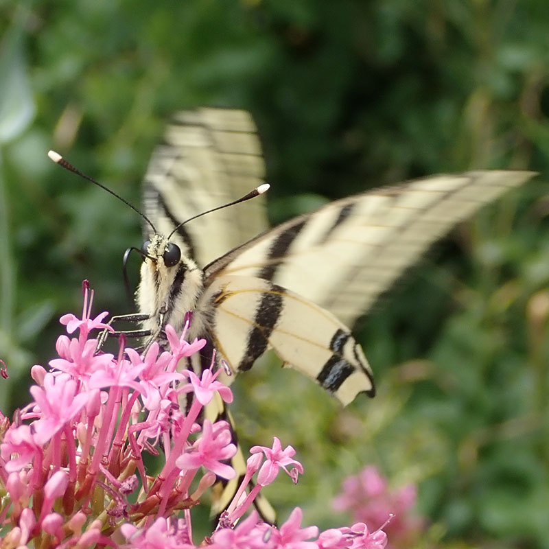 Fleurs visitées L'adulte butine les chardons, les cirses ou les centranthes (sur les photos centranthus angustifolius, centranthe à feuilles étroites.)
