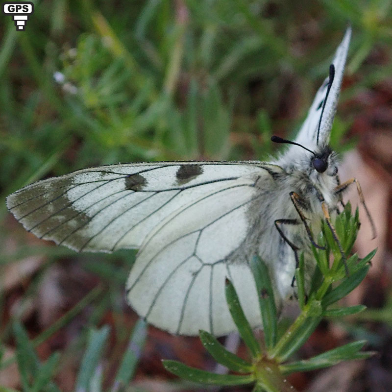 Le gazé est un papillon blanc avec des nervures très marquées sur les ailes comme le semi-Apollon. En vol, on pourrait le confondre avec celui-ci. Posé, il n'y a pas d'incertitude : les deux taches de la cellule, et celle de l'apex des ailes antérieures font la différence.