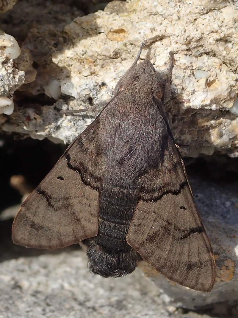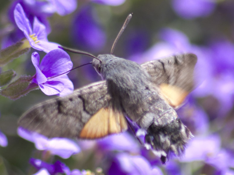 Le sphinx bourdon a le même type de vol stationnaire que le moro-sphinx, mais ses ailes sont transparentes à part une bordure couleur brune. Son abdomen est jaune, faisant penser à un bourdon. (voir la photo «comparaison des abdomens» plus bas)
