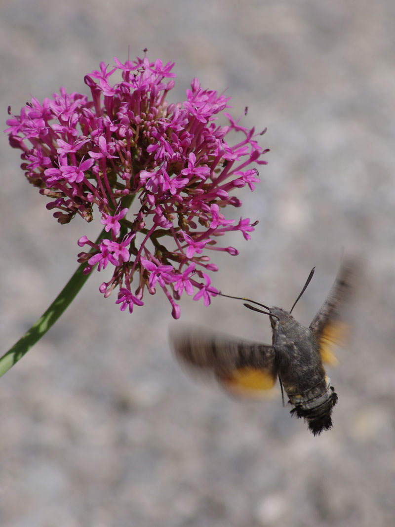 Fleurs visitées Il butine surtout les plantes produisant de nombreuses fleurs rapprochées, comme la centrante rouge par exemple.