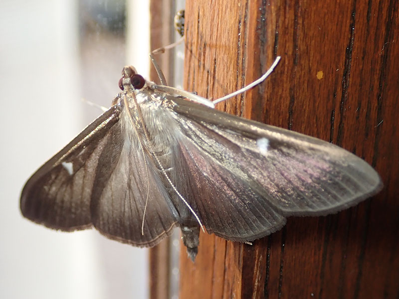 La pyrale du buis est un papillon de taille moyenne originaire d'Extrême-Orient qui a été introduit accidentellement en Europe dans les années 2000. En dix ans, elle a conquis toute la France métropolitaine. Elle ravage tous les massifs de buis en l'absence de prédateurs (Cependant, pour l'avoir constaté moi-même, des oiseaux, moineaux et mésanges, commencent à s'intéresser à cette nourriture abondante). Elle peut pulluler à certains endroits : des nuées de papillons s'envolent quand on secoue les branches basses des arbres car elle a l'habitude de se cacher sur l'envers des feuilles basses où elle passe la journée. Elle peut cependant butiner des fleurs en fin d'après-midi. La pyrale du buis est facile à reconnaître avec ses ailes blanches aux bords brun-foncé (marqués d'une petite tache blanche aux ailes antérieures) mais il existe une forme brune, en proportion assez importante (voir photo) qui passe plus inaperçue. Ce sont les chenilles qui hivernent. Les imagos vivent environ 9 jours pendant lesquelles la femelle pond ses oeufs qui éclosent en moyenne 7 jours plus tard. Les chenilles dévorent les feuilles de buis pendant environ un mois avant la nymphose qui, elle, dure 3 semaines avant de donner naissance à un nouvel imago. Le cycle total prend environ 2 mois et le nombre de générations peut atteindre 6 par an dans les régions chaudes... ce qui ne laisse pas beaucoup de chance de survie aux buis !