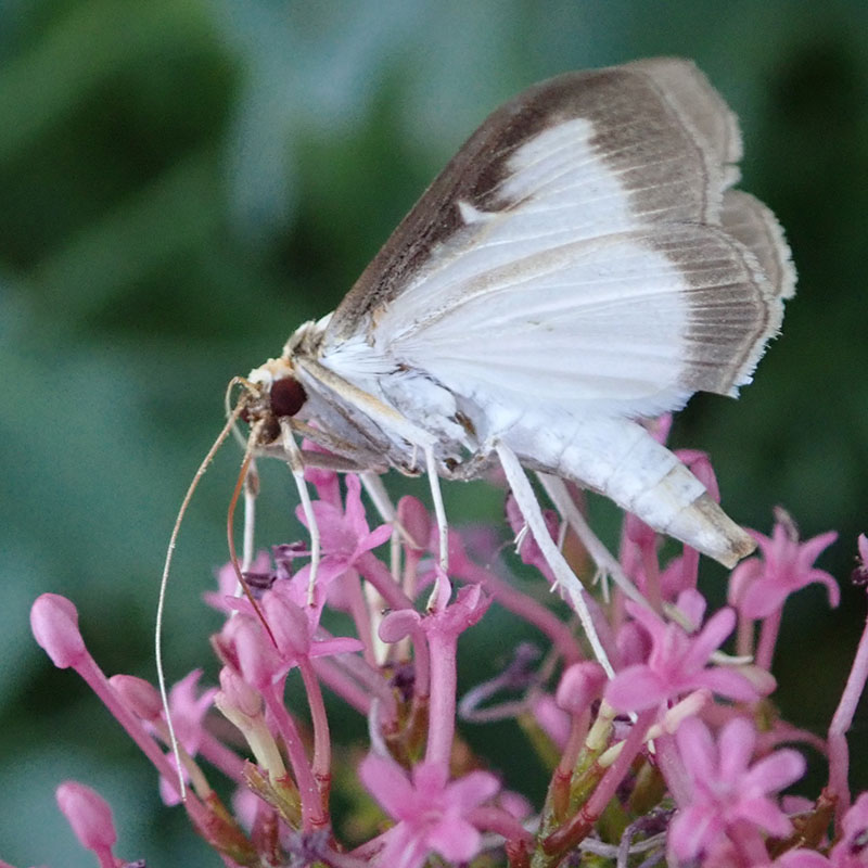 Fleurs visitées La pyrale du buis peut butiner des fleurs notamment la centranthe rouge, mais le plus souvent on la trouve cachée sous les feuilles basses des arbres et arbustes.
