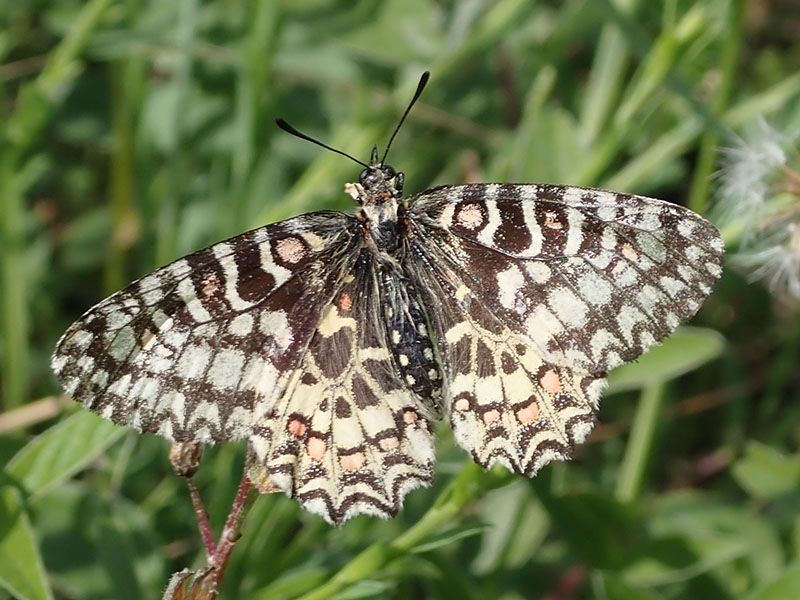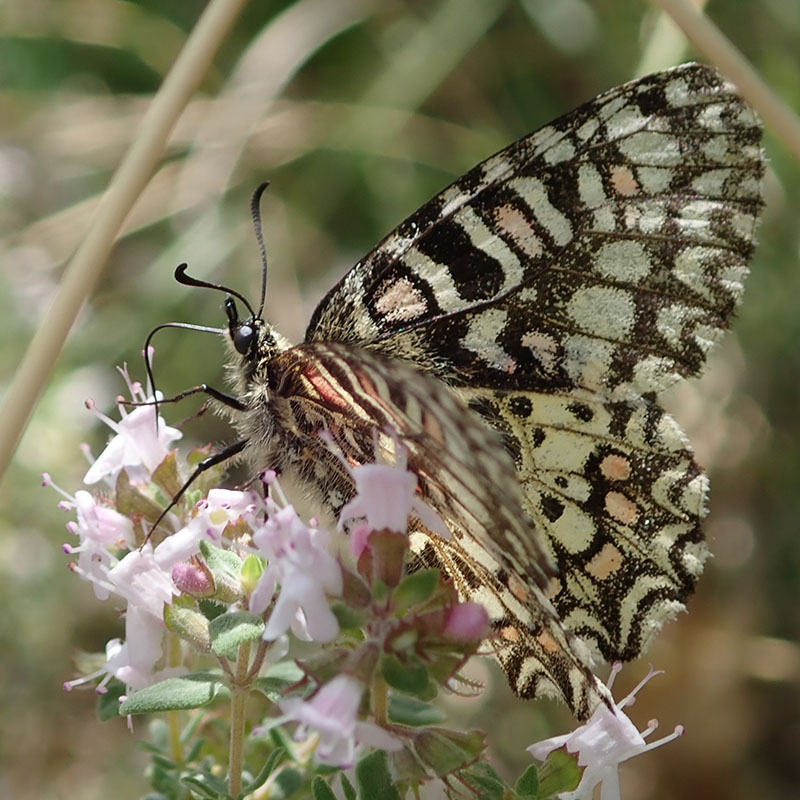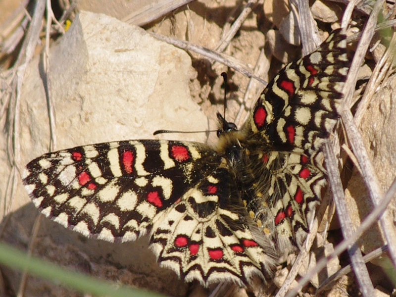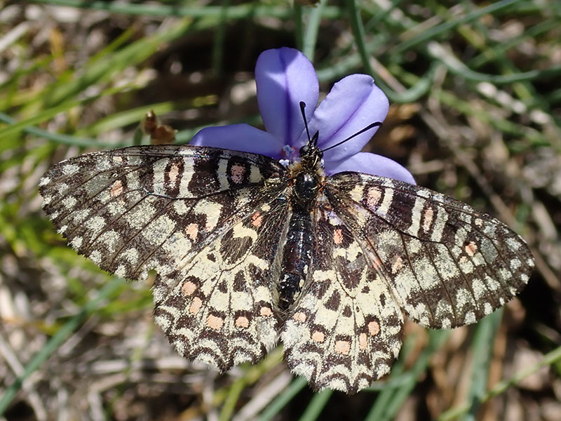 Ce discret papillon a une aire de répartition réduite à quelques départements méditerrannéens. C'est le papillon emblématique de Digne où existait la variété «honnoratii» avec des taches rouges plus grosses ; cette sous-espèce a été aperçue la dernière fois en 1991. Les ailes sont couvertes de carreaux jaunâtres séparés par des traits noirs. Le dessin des ailes est semblable chez les deux sexes. Les motifs se retrouvent sur le revers des ailes en couleurs plus atténuées. L'abdomen est marqué de taches latérales jaunes. Les chenilles vivent entre mai et début juillet. La nymphose a lieu dissimulée sur des brindilles ou de l'écorce tombée à terre. La nymphe hiverne. C'est une espèce en régression et protégée dans toute la France.